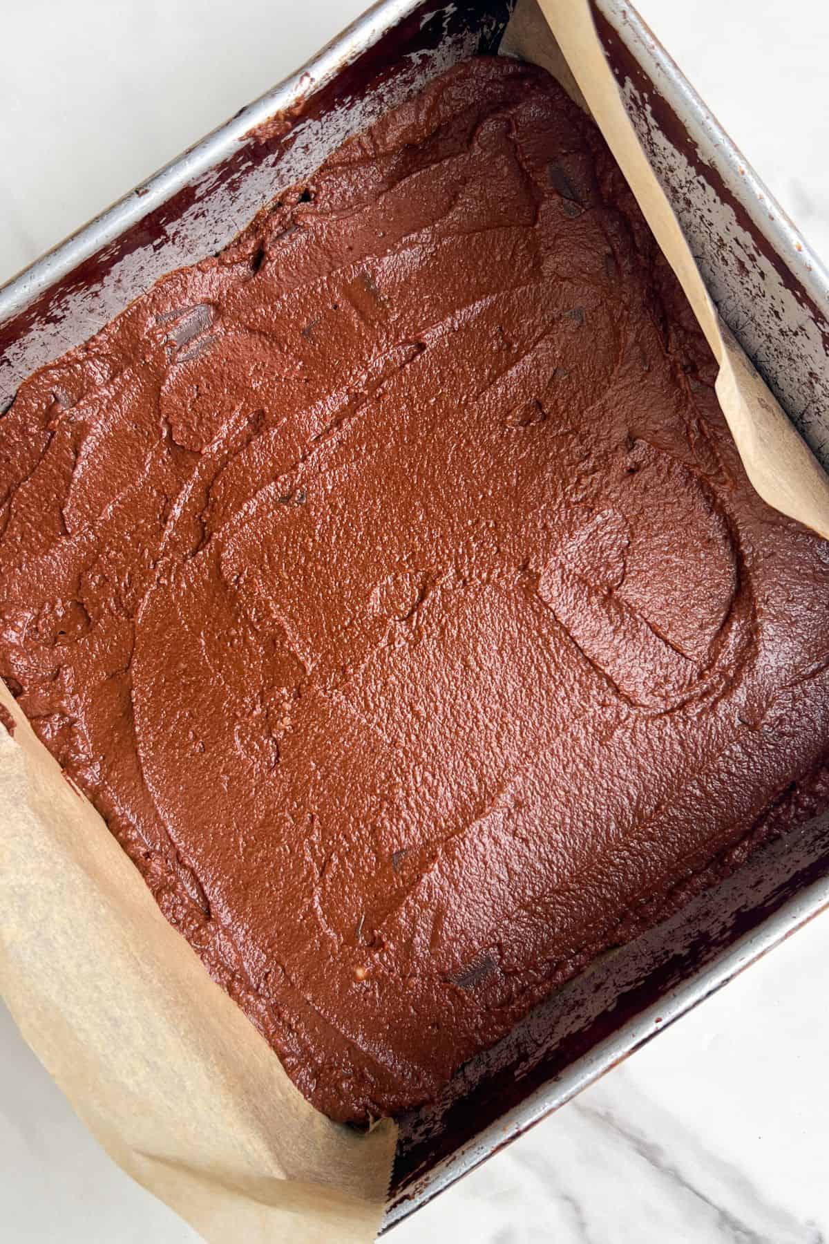 - Preheat the oven to 350 degrees F and line an 8×8 pan with parchment paper
