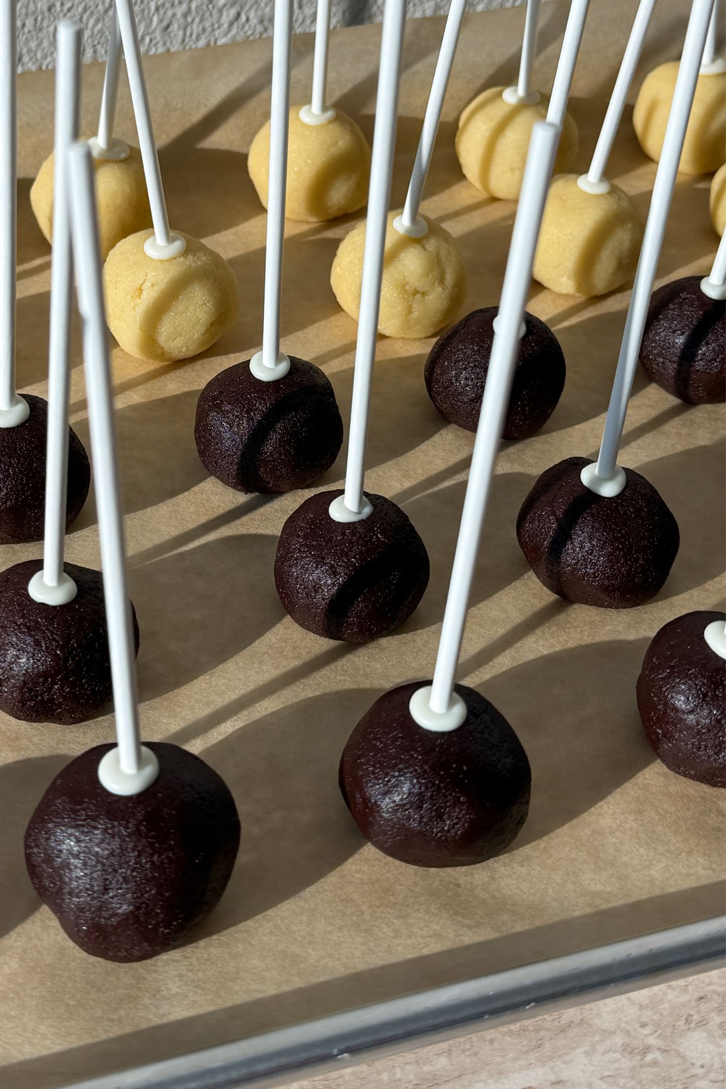 - Remove the cake pop balls from the fridge
