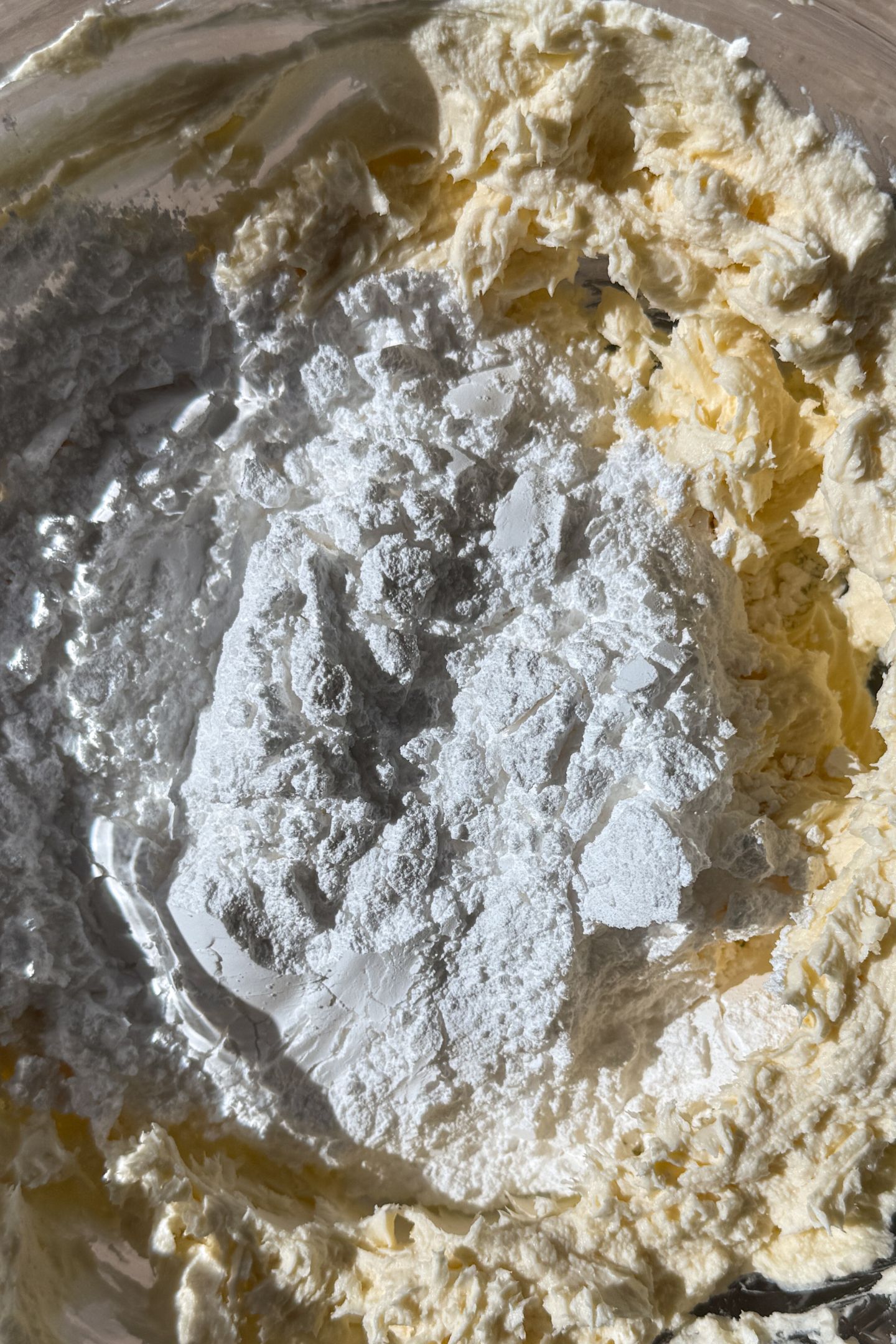 - Add in 1 cup of powdered sugar at a time, mixing until fully incorporated and there are no clumps